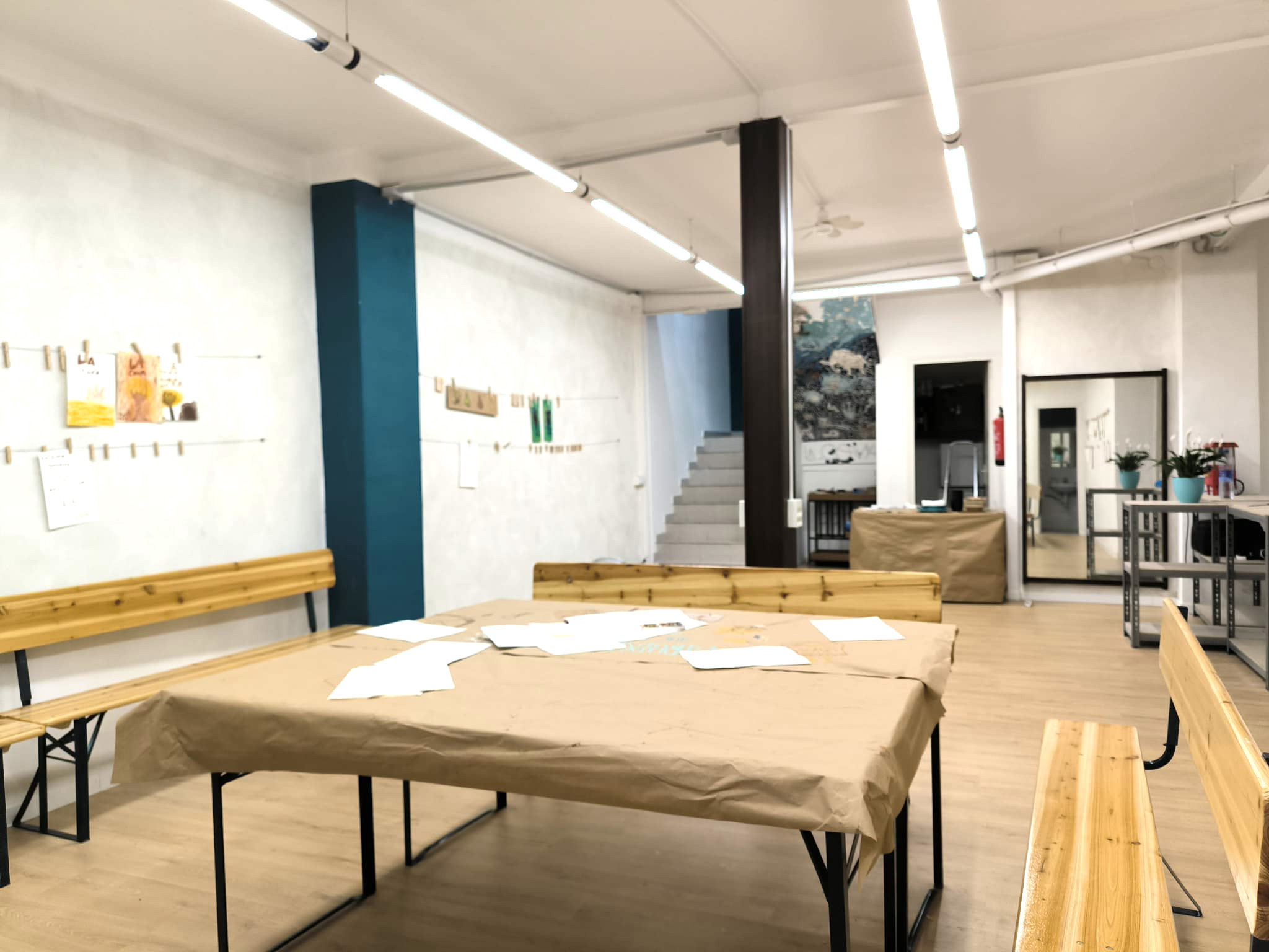 La Cova és més que un taller: és un espai per trobar-nos, per crear i per sentir-nos part d’una comunitat. Cada racó té la seva ànima i la seva manera de dir “benvingut”. Des de la copisteria, oberta al barri i plena de vida quotidiana, fins als tallers de producció i de creació, on les mans i les idees prenen forma. Aquí les coses no passen amb presses: hi ha temps per conversar, per experimentar i per equivocar-se sense por. És un lloc que cuida els processos tant com les obres, que posa els materials a l’abast de tothom i que celebra el valor del que fem junts.