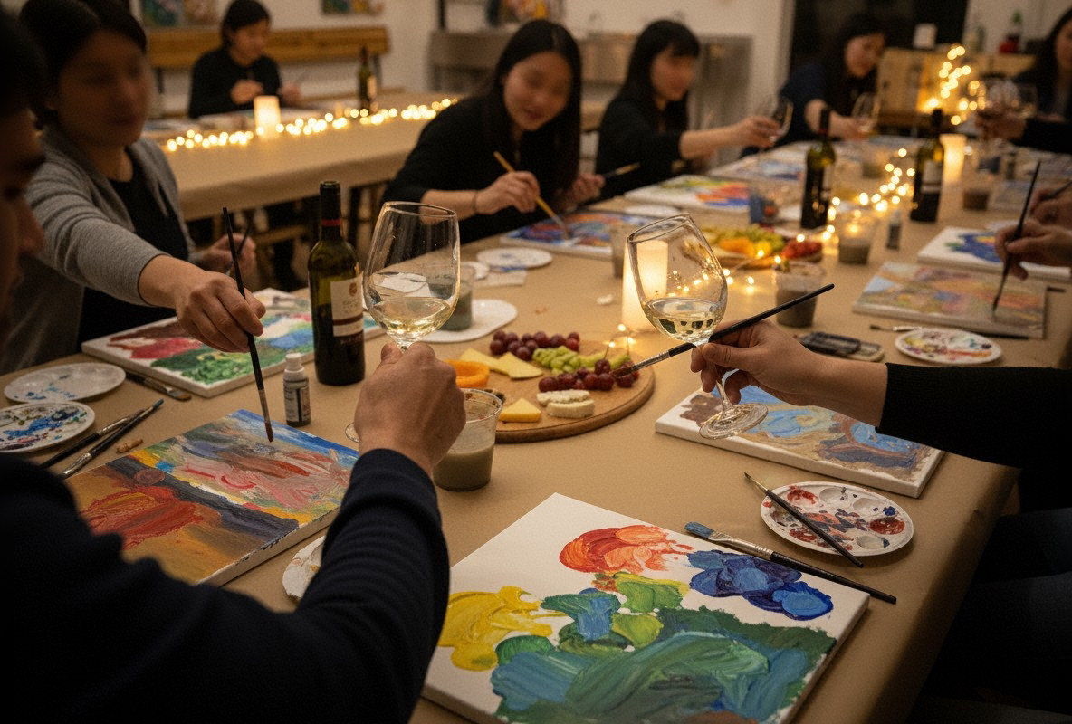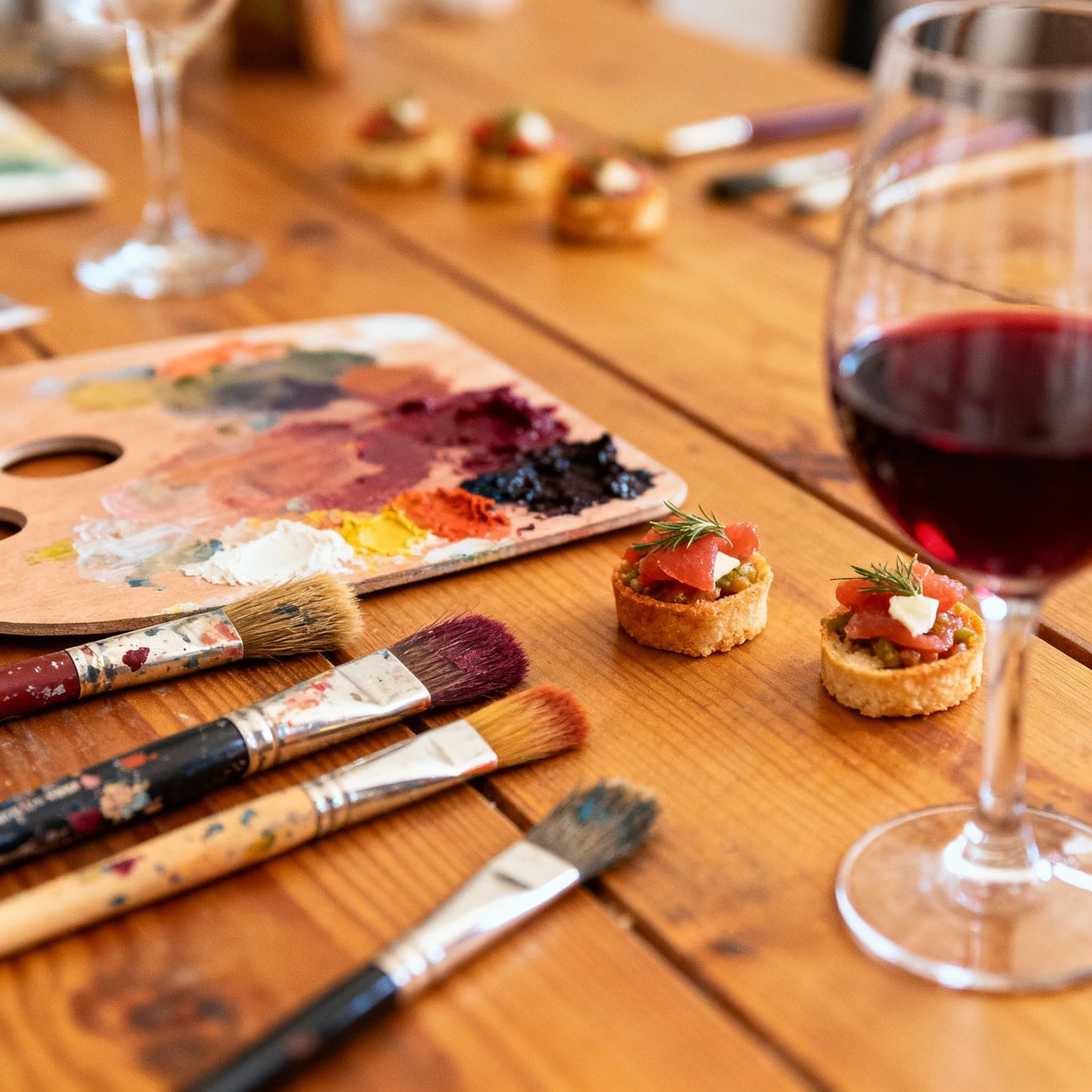 1ra Edició d’Art & Wine, un taller únic on combinem la pintura a l’oli amb la degustació de vins seleccionats i deliciosos picoteigs. Una tarda per despertar la teva creativitat, relaxar-te i gaudir d’un ambient artístic i social.